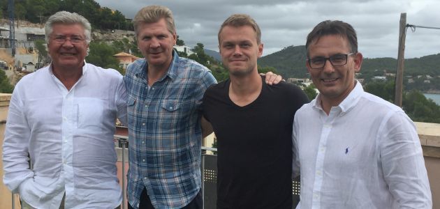 Zum Foto (v.l.): Präsident Wilfried Finke, der neue Chef-Trainer Stefan Effenberg, der neue Co-Trainer Sören Osterland und Geschäftsführer Sport Michael Born.