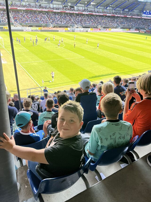 In diesem Jahr feiert der Kids Club seinen 15. Geburtstag und zum Start in die Jubiläumssaison gab´s den offiziellen Auftakt und rund 20 SCP07 Kids Club Mitglieder liefen mit selbstgemalten Bannern und Fahnen eine Stadionrunde und genossen den Applaus der Fans. Auch die Fanszene Paderborn grüßte mit einem Banner während des Spiels den Kids Club und gratulierte zum 15. Geburtstag.