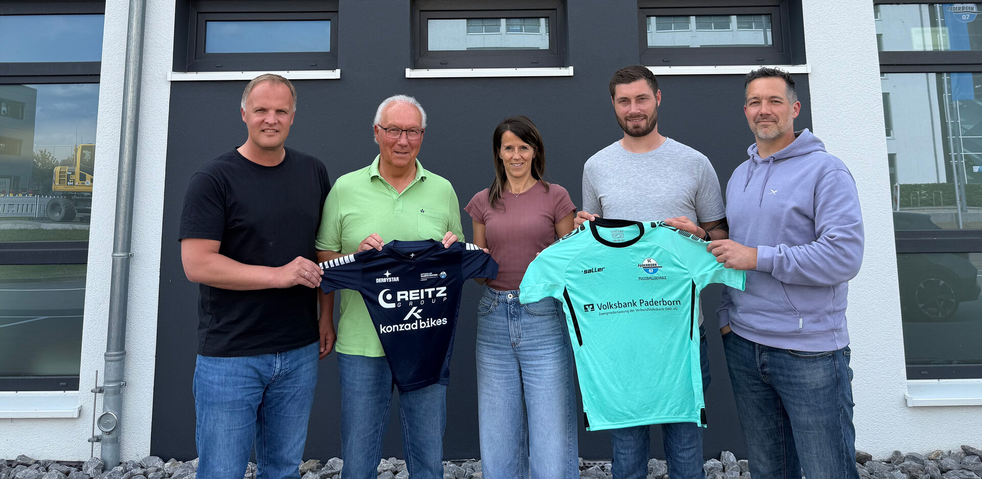 Zum Foto (von links): Christoph Müller (Leiter NULLSIEBEN AKADEMIE, SCP07), Jürgen Holletzek (Hollyvent), Neele Rickers (Leiterin Marketing | CSR & Entwicklung, SCP07), Christian Strohdiek (SCP07-Fußballschule) und Sebastian Holletzek (Hollyvent).