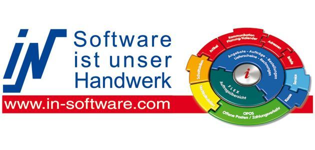IN-Software ist ein Unternehmen, das seit der Gründung im Jahre 1986 Software für Handwerk und Fertigung entwickelt. Im Kundenkreis des Software Herstellers sind u. a. Branchen wie Elektro, Sanitär, Heizung, Klima, Metall, Stuck, Zimmerei und Holzbau, Garten und Landschaftsbau, Maschinen- und Anlagenbau, sowie andere Unternehmen der Dienstleistungsbranche und des Mittelstandes vertreten. Besonderer Wert wird darauf gelegt, die tatsächlichen betrieblichen Abläufe abzubilden. Die Produkte sind ausgereift, einfach zu bedienen und es macht Spaß damit zu arbeiten. Im Laufe der Jahre wuchs die Zahl der Anwender und Mitarbeiter. IN-Software hat heute ca. 25.000 Anwender und beschäftigt weit über 100 Mitarbeiter, die überwiegend Softwareprofis, Mathematiker, Programmierer, Kaufleute oder Ingenieure sind.