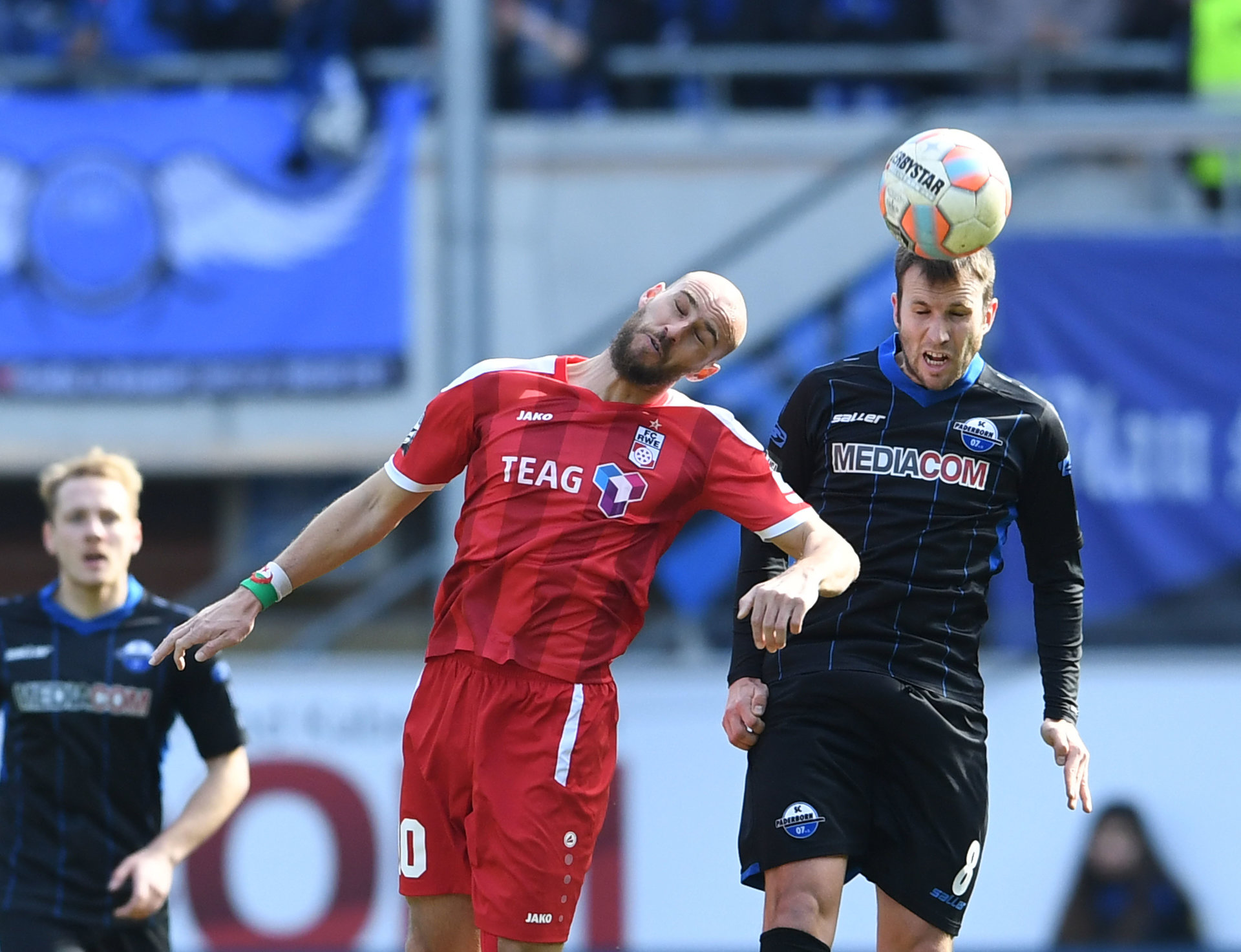 Vom Anpfiff an machten die Paderborner viel Dampf, verpassten aber einen frühen Torerfolg. Bertels kam auf Zuspiel eine Schritt zu spät (5.), Piossek scheiterte mit einem Freistoß an RWE-Keeper Philipp Klewin (23.), Marc Andre Kruska war nach einem Pass von Dedic im Abschluss nicht konsequent genug (33.), und Schonlau köpfte deutlich am Tor vorbei (43.).