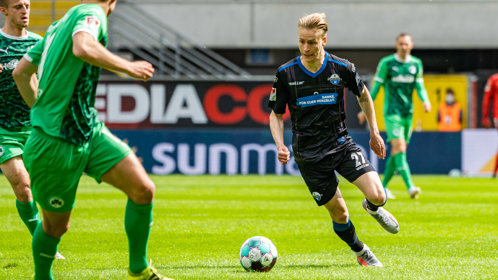 Die SCP07-Kicker starteten stark, Dennis Srbeny verpasste nach Zuspiel von Sven Michel ganz knapp (2.). Durch ein Eigentor ging Paderborn in Führung: Eine scharfe Hereingabe von Führich lenkte Paul Jaeckel ins eigene Netz (22.). Dann drehte Fürth durch Treffer von Havard Nielsen (28.) und Branimir Hrgota (42.) das Ergebnis, ehe Führich in der Nachspielzeit auf 2:2 stellte (45.).