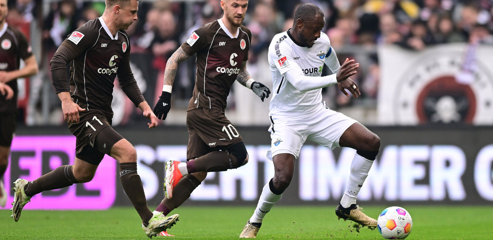 Nach dem Anschlusstor durch Adriano Grimaldi zum 1:2 (57.) erarbeiteten sich die SCP07-Kicker um Kapitän David Kinsombi (Foto) eine Drangphase. "In Halbzeit zwei haben wir uns gute Chancen herausgespielt und deutlich besser agiert als in den ersten 45 Minuten. Es ist schade, dass wir nicht mehr ausgleichen konnten", konstatierte Kinsombi im Interview mit der ARD.