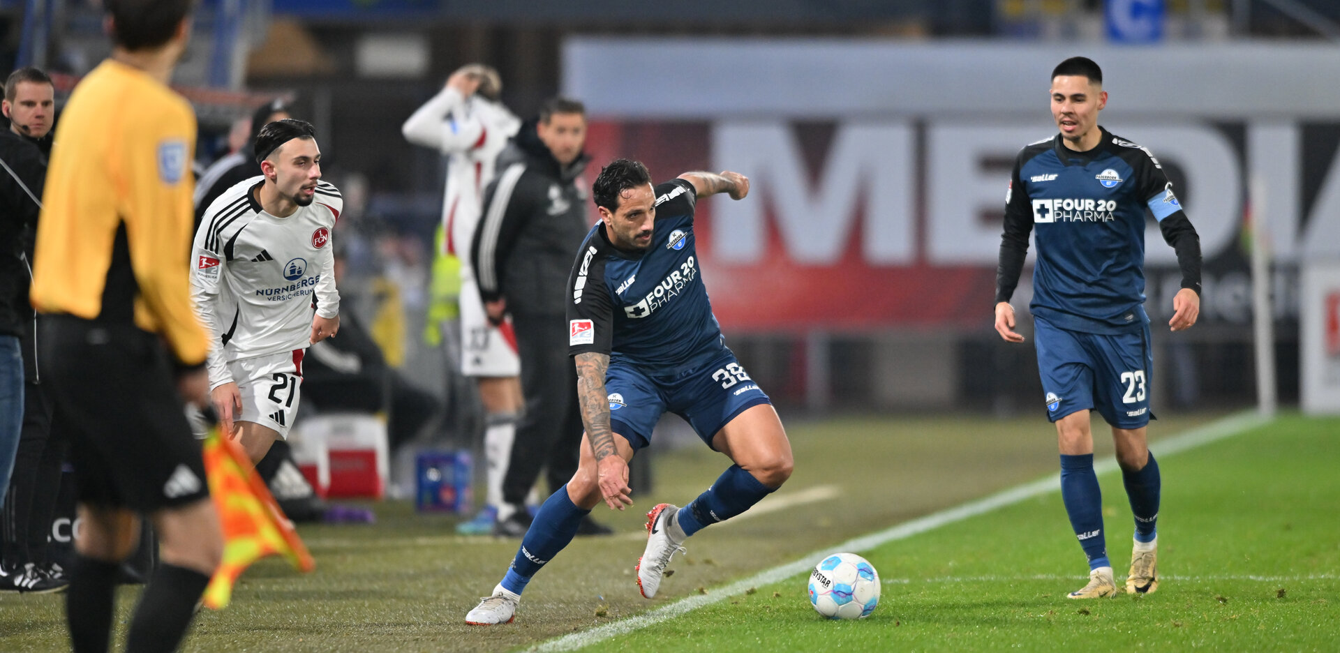 SC Paderborn 07: Schubert - Scheller, Götze, Brackelmann - Obermair, Engelns (70. Herrmann), Castaneda, Zehnter - Bilbija (90. Kinsombi) - Grimaldi, Michel (78. Ansah).
