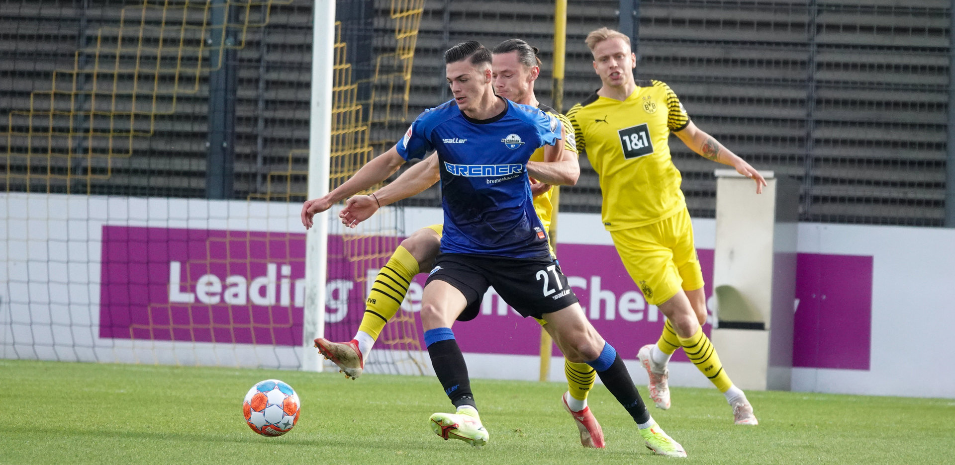 SC Paderborn 07: Schulze – Dörfler, Correia (46. Heuer), van der Werff (78.Henke) – Justvan (46. Schuster), Schallenberg (46. Thalhammer), Mehlem (78. Wendt), Carls (67. Hartmann) – Cuni (46. Ofori), Srbeny (67.Owusu), Pröger (67. Platte)