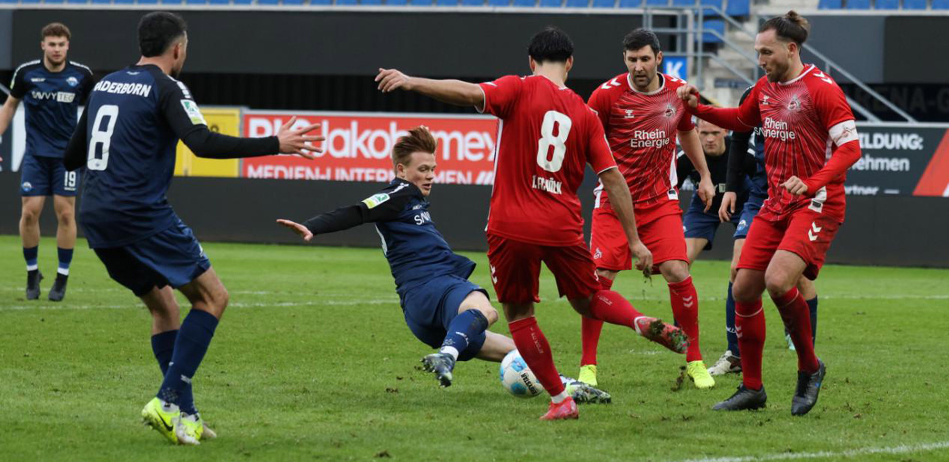 Die Paderborner kamen schwungvoll aus der Kabine und hatten schnell Grund zum Jubeln. Nach Zuspiel von Pledl traf De Jong zum 1:0 (49.). Auf Seiten der Gäste schlug dann der eingewechselte von der Hitz zu: Zunächst sorgte der Kölner per Kopf für den Ausgleich (76.), dann schob er zum 1:2 ein (81.). Der Schlusspunkt gehörte Paderborn, der eingewechselte Koch schob ein (90.+5).