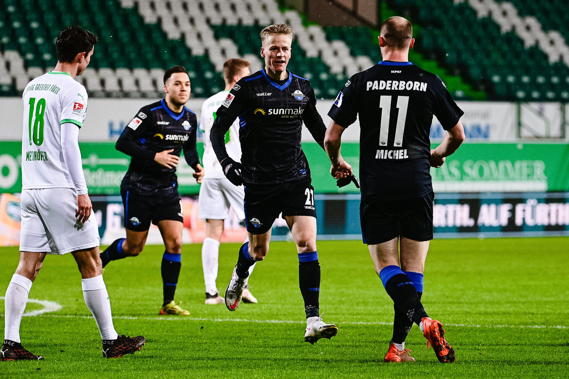 Die SCP07-Kicker starteten allerdings denkbar schlecht in die Begegnung. Sebastian Ernst köpfte eine Flanke von der linken Seite unbedrängt am langen Pfosten zum 1:0 für Fürth ein (8.). Nachdem Zingerle stark gegen Branimir Hrgota geklärt hatte (19.), kam Paderborn besser rein. Und folgerichtig zum Ausgleich: Führich versenkte den Ball nach Zuspiel von Sven Michel zum 1:1 im rechten Eck (24.).