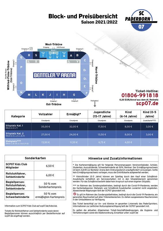 Der SCP07 weist darauf hin, dass es weiterhin ergänzende Regelungen zur Hygiene und zum Verhalten im Stadion bei den Heimspielen geben wird. Unberührt bleiben davon die aktuellen Allgemeinen Ticket- Geschäftsbedingungen und die Stadionordnung, die weiterhin zu beachten sind. Die im Zuge der Rückabwicklung ausgestellten Gutscheine der Saison 2019/2020 können für den Kauf von Tageskarten ausschließlich online genutzt werden. Der Verkauf von Einzelkarten erfolgt online oder über die Ticket-Hotline. Zudem ist der Verkauf von Einzelkarten auch im SCP07-Shop in der Benteler-Arena geplant. Sollte es im Zusammenhang mit der Corona-Pandemie zu einer kurzfristigen Spielabsage oder einer Austragung unter Ausschluss von Stadionbesuchern kommen, erstattet der SCP07 den Tageskarten-Preis unmittelbar nach der Austragung des Spiels.
