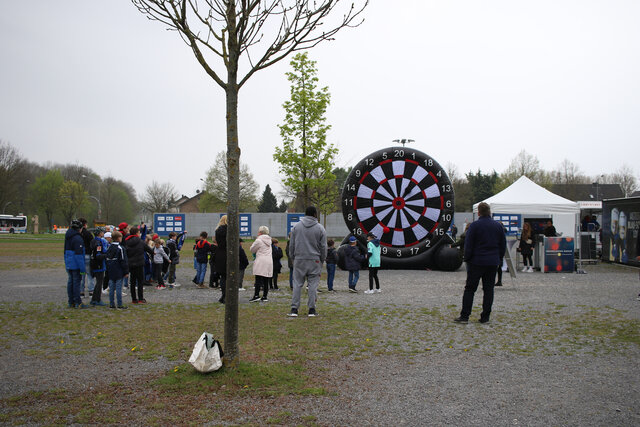 Vor Anpfiff wurde sich zu diesem besonderen Anlass natürlich nicht im Kids Club Zelt getroffen, sondern auf dem Vorplatz, damit alle Kinder sich an den Stationen noch ein wenige austoben konnten. Neben unserem SCP07 Kids Club Stand, mit Schussgeschwindigkeitsmesser und Dribbling-Parcours, bei denen die Kinder ihr Können unter Beweis stellten, gab es auch noch weitere Stationen. Die Fußballschule bot verschiedene Fußballübungen an. Bei den eSportlern konnte man sich in Fita 23 duellieren und bei TeamGeist konnte Eisstockschießen ausprobiert werden. Die Kinder hatten sichtlich viel Spaß alles auszuprobieren und sich an den Stationen die Zeit bis zum Anpfiff zu vertreiben.