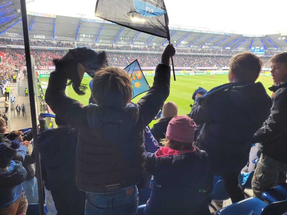 Im Stadion angekommen war die Stimmung bereits super und alle freuten sich auf ein spannendes Spiel. Der Schiedsrichter hat das Spiel gerade erst angepfiffen, da hielt es niemanden mehr auf seinem Sitz, denn Aaron Zehnter erzielte direkt die 1:0 Führung. Und auch das 2:0 ließ nicht lange auf sich warten. Bereits wenige Minuten später ertönte der nächste Jubel durch die Arena, als auch Filip Bilbija das Runde ins Eckige schoss. Und es wurde immer besser – Kapitän Raphael Obermair trug sich ebenfalls in die Torschützenliste ein und bleib beim Foulmeter eiskalt und verwandelte. 2 Tore von den roten Teufeln aus Kaiserslautern brachten wieder spannend ins Spiel und auch der Ausgleich fiel kurz nach der Halbzeitpause.